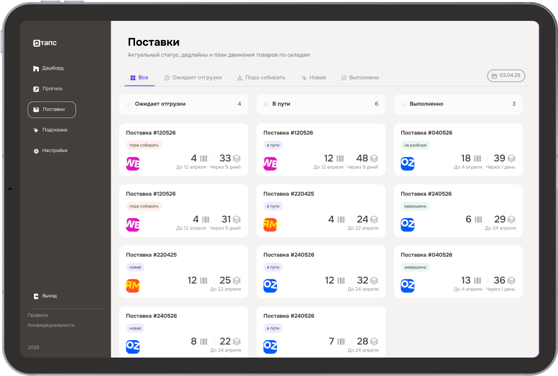 Нужно вручную планировать отгрузки по каждому маркетплейсу